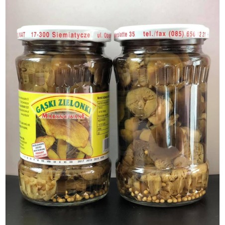 Gąska zielonka marynowana charakteryzuje się subtelnym, lekko orzechowym profilem smakowym. Tradycyjna receptura marynaty zachowuje naturalne walory grzyba, czyniąc go idealnym dodatkiem do sałatek, dań mięsnych i przystawek.