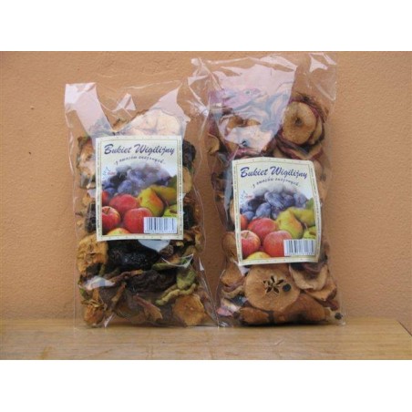 Bukiet wigilijny z owoców suszonych to starannie dobrana kompozycja jabłek, gruszek i śliwek. Słodko-kwaśny smak oraz bogaty aromat czynią go nieodzownym składnikiem tradycyjnego wigilijnego kompotu.